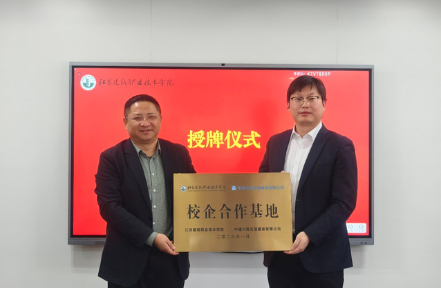 1月9日,中建六局交通建设有限公司执行总经理、总经济师韩志侠一行莅临我校,开展校企共建座谈交流。由交通学院牵头,双方围绕人才培养、科研创新、技术转化等核心议题深入磋商,成功签署战略合作协议并举行授牌仪式,标志着我校与行业龙头企业的产教融合迈入新阶段。校党委委员、副校长蒋兆峰出席活动并致辞。