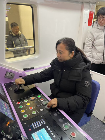 徐州地铁六号线作为采用最高等级(GoA4级)全自动驾驶模式运营的线路,对其运营维护人员提出了更高地智能化运维需求。在徐州轨道交通有限公司技术骨干的悉心指导与安全监督下,教师们深入运营核心场景,进行了系统性的实操训练。在车辆段控制中心(DCC),教师们学习了全自动模式下行车组织、车辆调度、远程监控及应急指挥的完整流程与规范,深入理解了“无人驾驶”背后高度集中的智能控制逻辑。随后,教师们登上全自动驾驶电客车,实地认知了列车智能感知系统、障碍物检测、精确停车等关键技术设备,并模拟了多种运营场景下的故障判断与应急处置程序。在工程车实训环节,教师们则重点掌握了在配合全自动线路施工、检修及救援作业时的安全操作规程与协同作业要点。