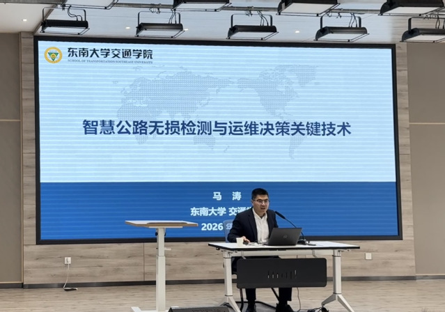2026年1月19日,学院邀请东南大学交通学院院长、二级教授马涛,为全院教师做了题为“智慧公路无损检测与运维决策关键技术”。马教授分享了他带领团队转型发展以及取得的系列研究成果,并结合科研工作思考东南大学专业转型及人才培养方案调整,对我们学院专业转型升级有很强的借鉴意义。